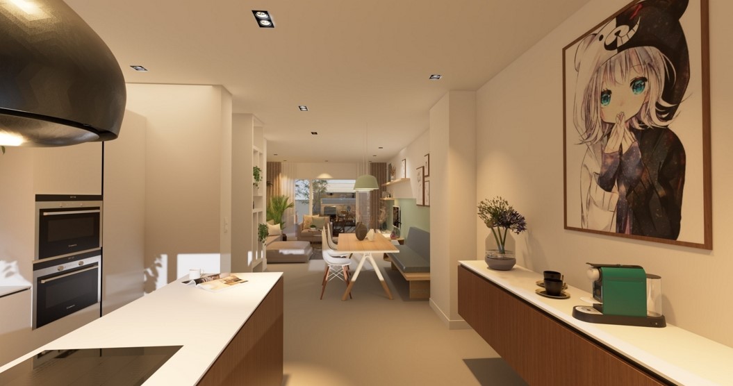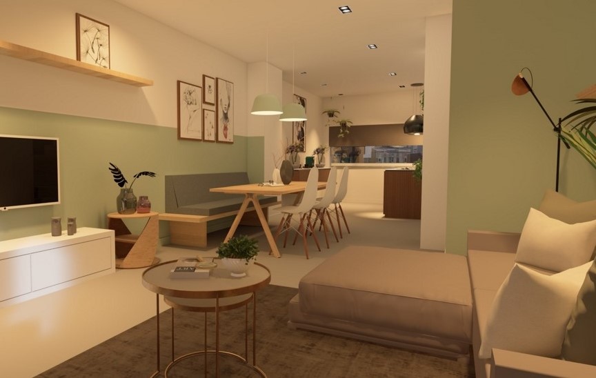 Interieur ontwerp woonkamer en eethoek.